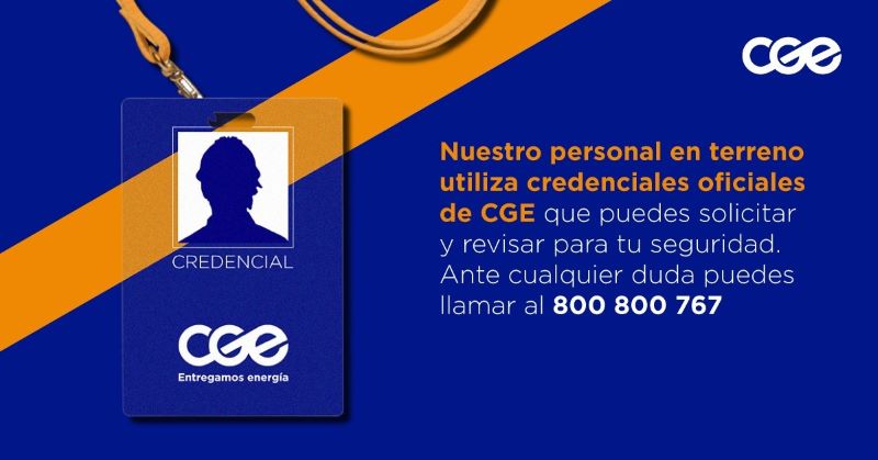 CGE reitera protocolo de identificación de personal contratista y funcionarios de la compañía que cumplen labores de terreno